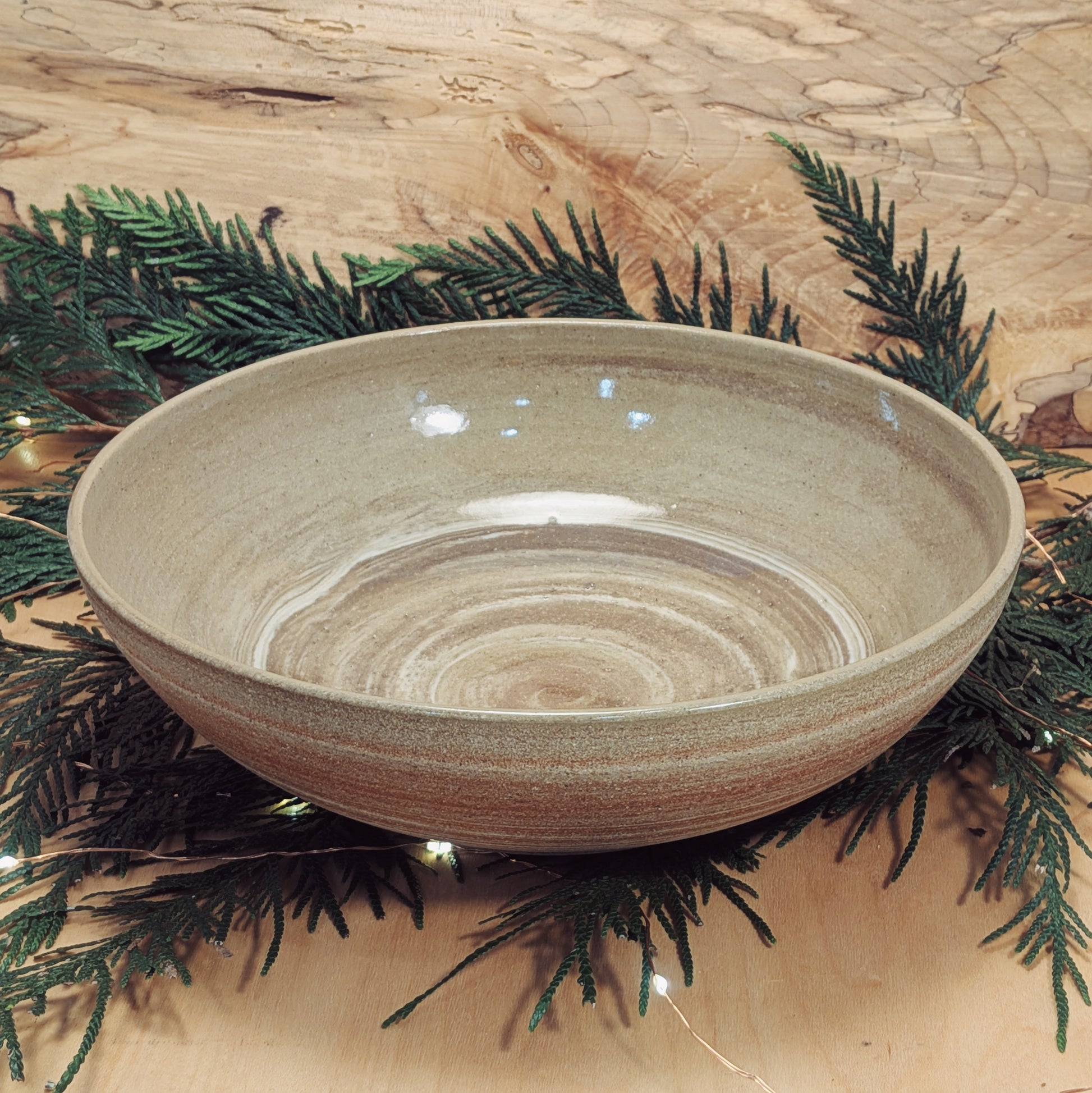 Made of a mix of stoneware clays, marbled together on the pottery wheel. Clear glaze.